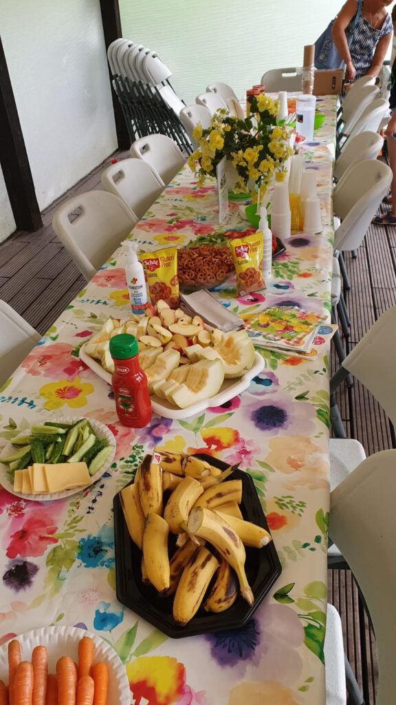 Pēc aktīvas laika pavadīšanas izklaižu parkā tika uzklāts skaists piknika galds. Piknika dalībnieki bija atnesuši gan pašu audzētus gurķus un tomātus, gan pašu taisītus marinējumus un sālījumus, kas piknikam piešķīra ļoti mājīgu un sirsnīgu gaisotni. Visi piknika dalībnieki saņēma nelielas bezglutēna dāvanas no kompānijām Schär, Nestle un Alojas.