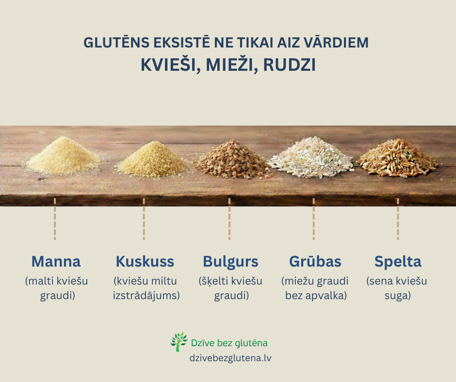 Kvieši, mieži un rudzi – tie ir pirmie vārdi, ko uzzinām, meklējot informāciju par bezglutēna diētu. Tomēr, kā novērots, ikdienā šo graudu citas formas un citi nosaukumi rada vislielāko apjukumu un kļūdas bezglutēna diētā. Izpratne par to, kādos veidos var tikt pārstrādāts viens un tas pats grauds, ir kritiski svarīga, lai novērstu glutēna nonākšanu ēdienā gan mājas apstākļos, gan publiskajā ēdināšanā.