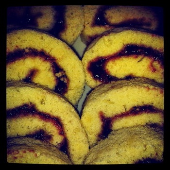 Gatavo plātni ar visu cepampapīru izņem no pannas un sarullē. Rullī atstāj atdzist (šādi to būs vieglāk pēc tam sarullēt, jo mīklai jau būs izveidojusies ruļļa “atmiņa.” ). Kad atdzisis, attin un nosmērē ar ievārījumu. Cieši sarullē, ņemot nost cepampapīru. Gatavo ruleti apkaisa ar pūdercukuru.