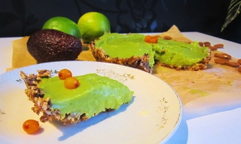 Liek blenderī avokado, 2 laimu sīki rīvētas miziņas un 1 laima sulu, pievieno kokosriekstu eļļu, saldinātāju. Maļ.