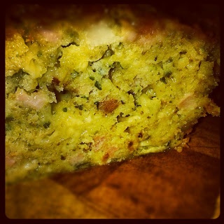 Сыр и ветчину порезать маленькими кубиками и добавить к муке, маслу и яйцам.